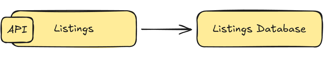 The Listings module should not reach directly into the Reviews database, and the Reviews module should not query Listings data directly. Instead, communication happens strictly through each module’s public API.