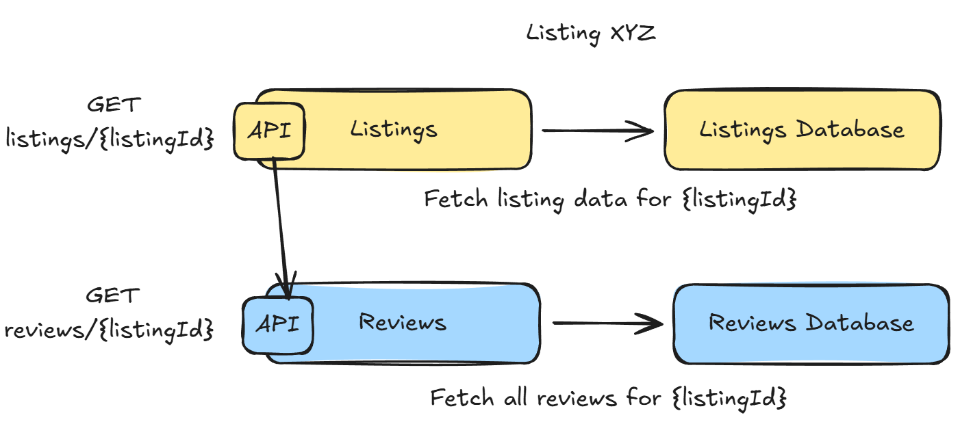 Imagine we’re building a page that needs to display a specific listing (for example, a house on XYZ Street) along with all the reviews people have left for it.