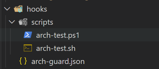 "windows": "powershell -ExecutionPolicy Bypass -File .github/hooks/scripts/arch-test.ps1",