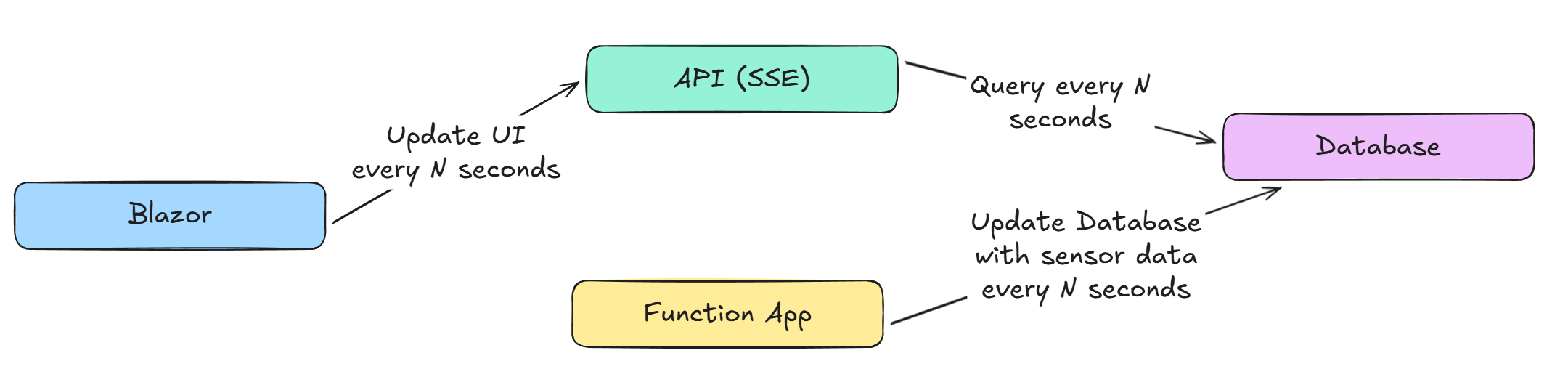 Today’s demo shows how to build real-time UI updates in .NET 10 without SignalR, using plain Server-Sent Events. An Azure Function simulates a weather sensor writing data to the database, while a Minimal API streams the updates live to a Blazor WASM frontend.